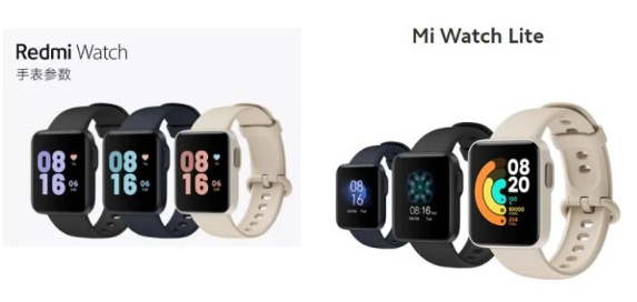| Redmi手表(REDMIWT01) | 小米手表精簡版(REDMIWT02) | |