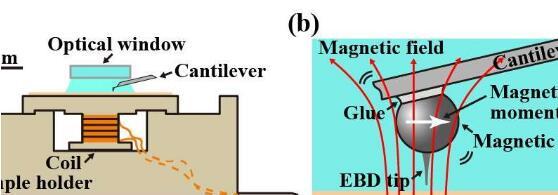 通常,壓電致動(dòng)器會(huì)產(chǎn)生一個(gè)聲波,該聲波會(huì)驅(qū)動(dòng)懸臂以其共振頻率振蕩。然而,這種方法易于導(dǎo)致將致動(dòng)器連接到懸臂的裝置的組件對(duì)共振的虛假貢獻(xiàn)。這些影響對(duì)最靈敏的懸臂梁更大,這些懸臂梁很小并且具有很高的兆赫茲諧振頻率。替代方法是光熱,靜電或電致伸縮懸臂梁激發(fā),但是如果所研究的材料是光敏材料或保持在電化學(xué)活性液體中,則這些材料也有缺點(diǎn)。相反,金澤大學(xué)的福島健(Takeshi Fukuma)及其同事采用了磁激勵(lì)方法。