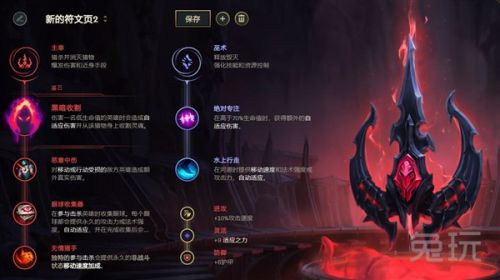 艾克的符文建議選擇黑暗收割流,艾克的兩段E配合減速懲戒很容易黏人打出三環(huán)爆發(fā),因此疊加黑暗收割的速度快。其他符文建議點(diǎn)出惡意中傷,有紅BUFF或者W可以很好地打出真實(shí)傷害,最后一行則點(diǎn)出無(wú)情獵手配合副系的水上行走。