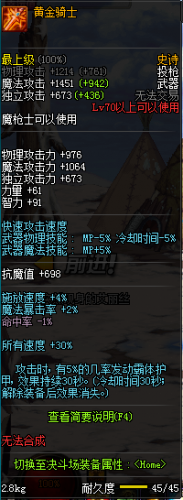 龍槍,雖然技能百分比很高,貌似現(xiàn)在所有職業(yè)里魔法百分比最高的就是龍槍