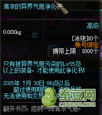 效果:只有被異界氣息污染的55級(jí)以上裝備,可以使用,需要10個(gè)冰塊;