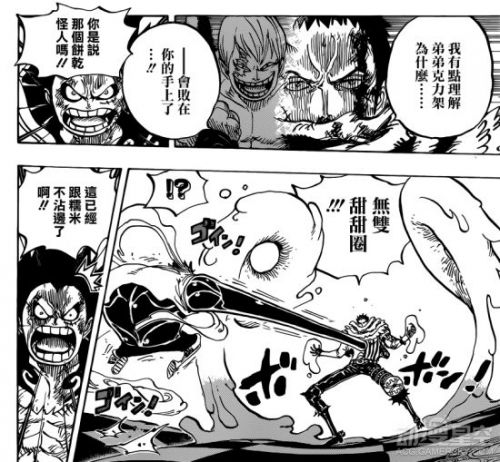 路飛成功的開啟了四檔,而失去冷靜的卡塔庫栗無法使出“見聞色”,被路飛暴打。不過一旦卡塔庫栗冷靜下來,他的實力還是相當(dāng)可怕的,用身體黏住了路飛的拳頭,并且開始出大招。