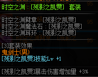 鬼泣武器+防具+首飾組合,6套效果殘影之凱賈暴擊傷害+3%,9套效果殘影之凱賈技能加一級和暴擊傷害+14%。特殊裝備三種效果,第一種3級殘影之凱賈,第二種2級殘影之凱賈和1.5%暴擊傷害,第三種殘影之凱賈加一級和暴擊傷害+3%。