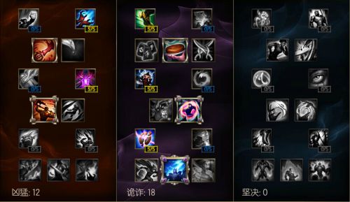 Faker 在使用近戰(zhàn)AP刺客小魚人時,選擇了18-12-0的點法。因為多為法系傷害,主要點出了法強和法穿。這里重點點出了“冥火之觸”(傷害性技能造成額外傷害)。剩余加點在“詭詐系”中點出了“危險游戲”(擊殺或助攻時,回復生命值和法力值),這是使用刺客型英雄時通常會被點出的天賦。