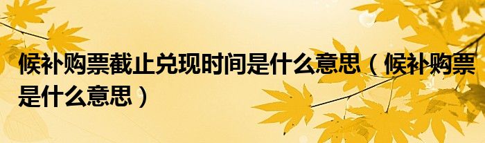 大家好,小堂為大家解答以上問題。候補購票截止兌現(xiàn)時間是什么意思,候補購票是什么意思目前這個還是有很多人還不知道,現(xiàn)在讓我們一起來看看吧!