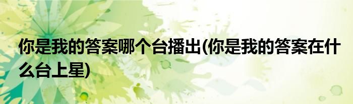 大家好,小天來為大家解答以上問題。你是我的答案哪個(gè)臺(tái)播出,你是我的答案在什么臺(tái)上星這個(gè)很多網(wǎng)友還不清楚,現(xiàn)在讓我們一起來瞧瞧吧~!