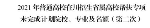 2021四川國(guó)家專項(xiàng)計(jì)劃未完成計(jì)劃第三次、地方專項(xiàng)計(jì)劃、省屬高校幫扶專項(xiàng)計(jì)劃未完成計(jì)劃第二次征集志愿計(jì)劃已經(jīng)發(fā)布,來(lái)看一下詳細(xì)信息。