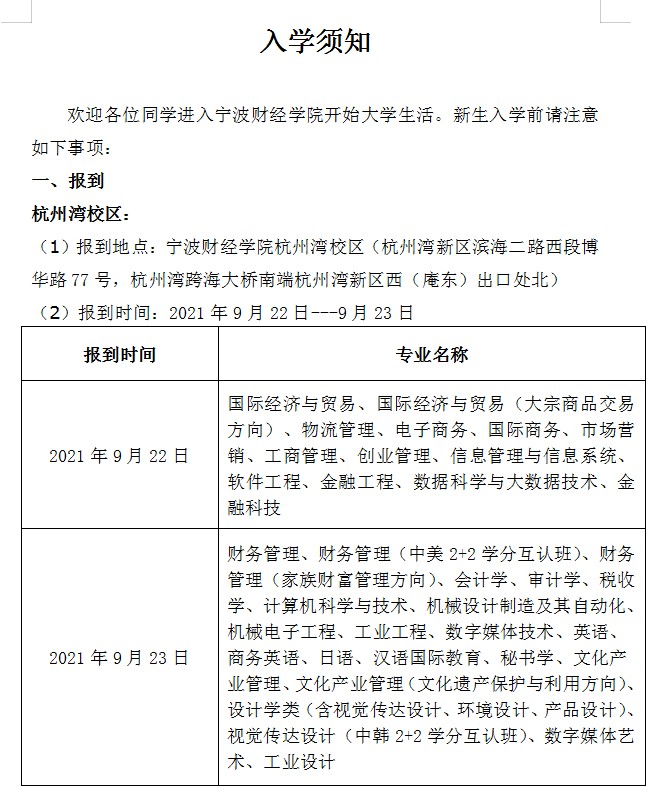 2021年寧波財經(jīng)學院新生報到流程及入學須知