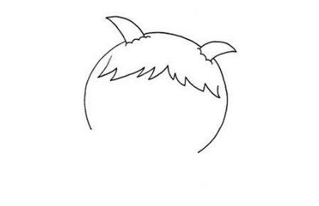 首先,畫(huà)出暖羊羊前額劉海整齊的頭,在頭頂畫(huà)兩個(gè)角。