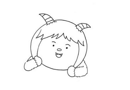 然后畫(huà)出暖羊羊的圓臉,它的五個(gè)特征和小眼睛,并在他的頭兩側(cè)畫(huà)出暖羊羊的兩只胳膊。