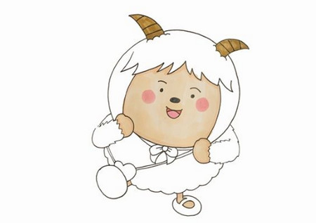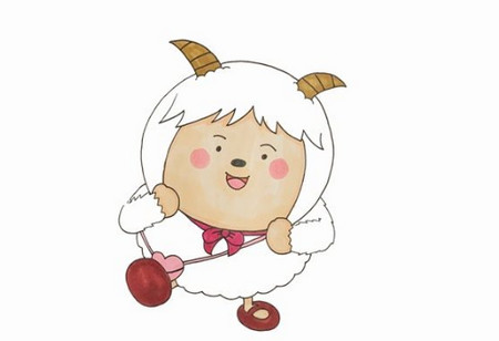最后蝴蝶結(jié)涂成紅色,包包涂成粉色,鞋子涂成棕紅色,可愛(ài)的暖羊羊簡(jiǎn)筆畫(huà)就完成了。