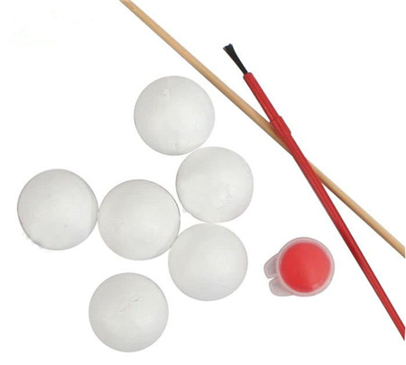 準(zhǔn)備必要的材料,泡沫球,竹簽,刷子和紅色顏料。