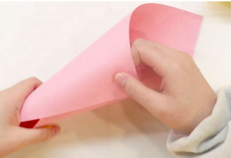 拿一張粉紅色的折紙,卷成一個圓錐體,作為菊花包裝紙。