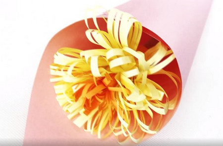 將完成的菊花放入包裝紙中,一個簡單的手工菊花就完成了。
