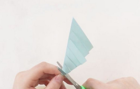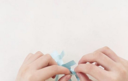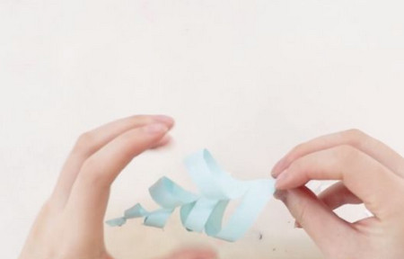 首先準(zhǔn)備一個方形的折紙,沿著對角線對折,切成一厘米左右寬度的長條,注意中間不要剪。