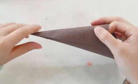 首先取一張方形的黑色彩紙,卷成錐形,將底部多余的部分剪掉。
