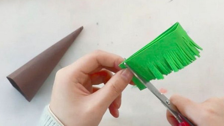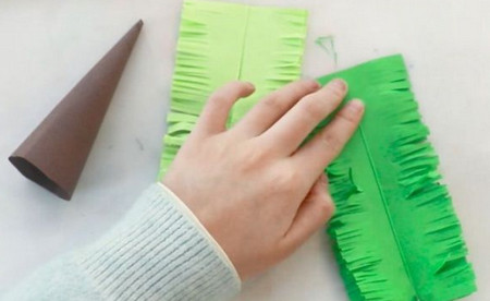 繼續(xù)把淺綠色的彩紙剪成穗狀的葉子。