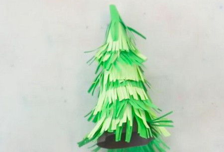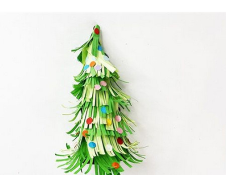 最后用工具在一些各種顏色的彩紙上剪下圓形的小紙片,貼在樹上作為裝飾,一棵簡單的圣誕樹就做好了。