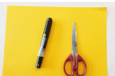先準(zhǔn)備一張彩紙,一把剪刀和一支黑筆。