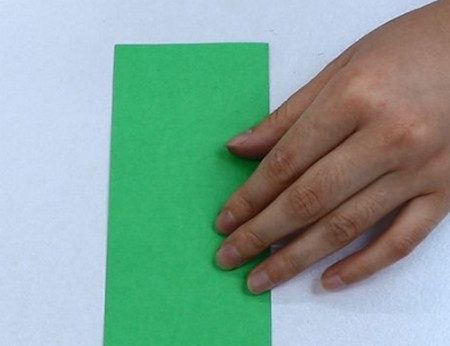 準備一張綠色方形彩紙,左右折疊成長方形。