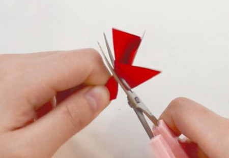 用鉛筆在彩紙上畫出需要剪的部分,多余的部分用剪刀剪掉。