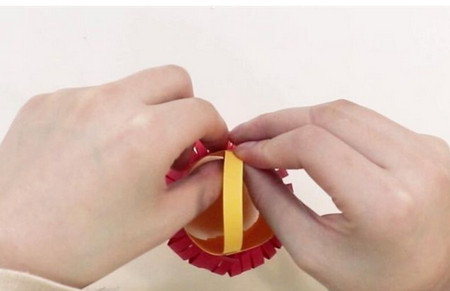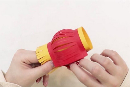 把彩紙的兩端握在一起,燈籠的形狀就出來了!