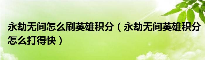 你們好,我是教育新聞網(wǎng)的客服小劫,今天為大家說一下這個(gè)永劫無間英雄積分怎么打得快相關(guān)的問題。