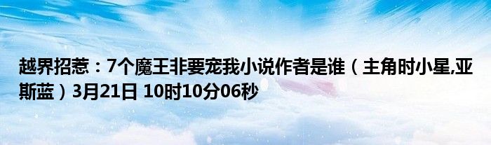 你們好,今天木子分享越界招惹:7個(gè)魔王非要寵我小說(shuō)作者是誰(shuí),跟隨我一起瞧瞧吧!