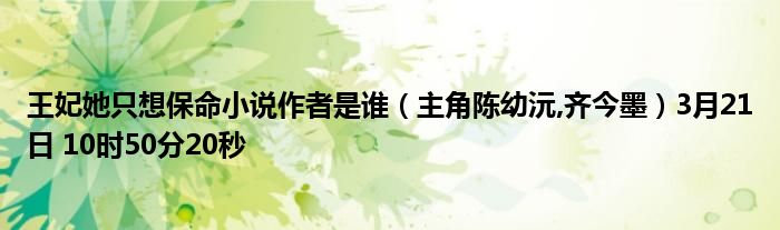 王妃她只想保命小說作者是誰(主角陳幼沅,齊今墨)3月21日 10時50分20秒