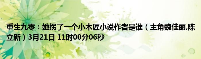 重生九零:她拐了一個小木匠小說作者是誰(主角魏佳麗,陳立新)3月21日 11時00分06秒