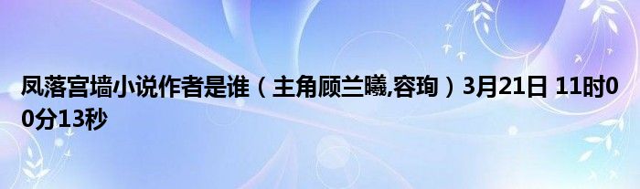 你們好,今天木子分享鳳落宮墻小說作者是誰,跟隨我一起瞧瞧吧!