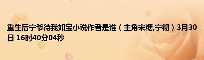 你們好,今天木子分享重生后寧爺待我如寶小說作者是誰,跟隨我一起瞧瞧吧!