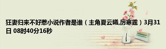狂妻歸來不好惹小說作者是誰(主角夏云曦,厲寒霆)3月31日 08時40分16秒