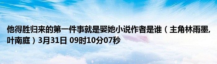 他得勝歸來的第一件事就是娶她小說作者是誰(主角林雨墨,葉南庭)3月31日 09時10分07秒