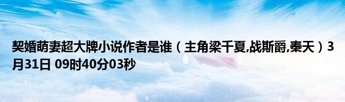 契婚萌妻超大牌小說作者是誰(主角梁千夏,戰(zhàn)斯爵,秦天)3月31日 09時40分03秒
