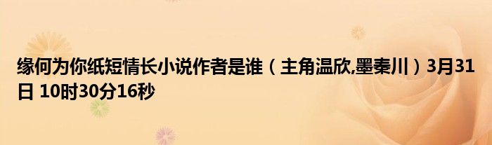 你們好,今天木子分享緣何為你紙短情長小說作者是誰,跟隨我一起瞧瞧吧!