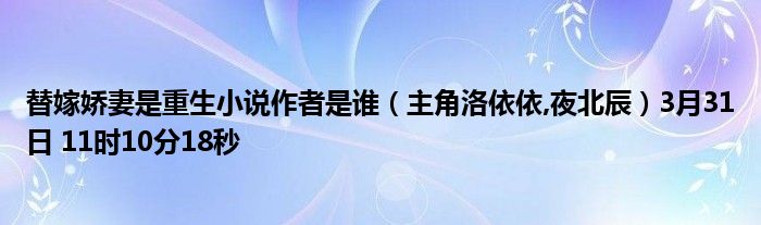 你們好,今天木子分享替嫁嬌妻是重生小說作者是誰,跟隨我一起瞧瞧吧!
