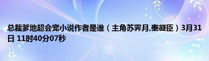 總裁爹地超會(huì)寵小說(shuō)作者是誰(shuí)(主角蘇霽月,秦凝臣)3月31日 11時(shí)40分07秒