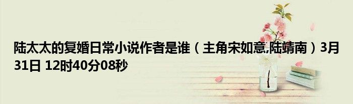 你們好,今天木子分享陸太太的復(fù)婚日常小說作者是誰,跟隨我一起瞧瞧吧!