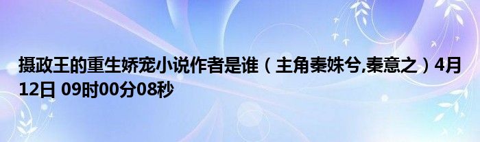 攝政王的重生嬌寵小說(shuō)作者是誰(shuí)(主角秦姝兮,秦意之)4月12日 09時(shí)00分08秒