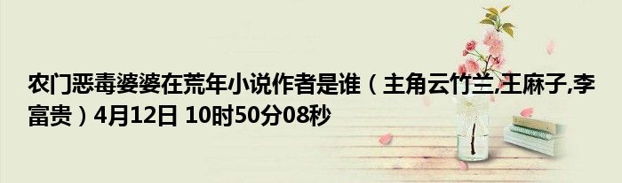 農(nóng)門惡毒婆婆在荒年小說作者是誰(主角云竹蘭,王麻子,李富貴)4月12日 10時(shí)50分08秒