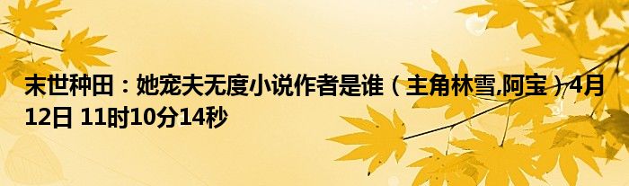 末世種田:她寵夫無度小說作者是誰(主角林雪,阿寶)4月12日 11時10分14秒