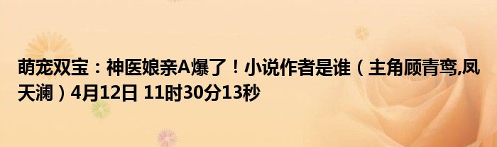 你們好,今天木子分享萌寵雙寶:神醫(yī)娘親A爆了!小說作者是誰,跟隨我一起瞧瞧吧!