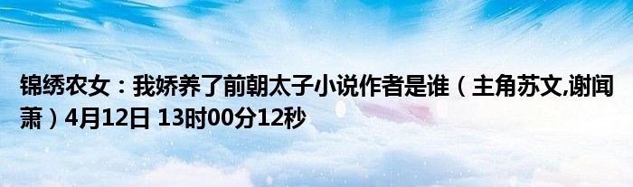 你們好,今天木子分享錦繡農(nóng)女:我嬌養(yǎng)了前朝太子小說作者是誰,跟隨我一起瞧瞧吧!