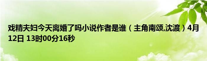 戲精夫婦今天離婚了嗎小說作者是誰(主角南頌,沈渡)4月12日 13時00分16秒