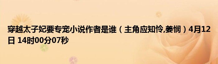你們好,今天木子分享穿越太子妃要專寵小說作者是誰,跟隨我一起瞧瞧吧!