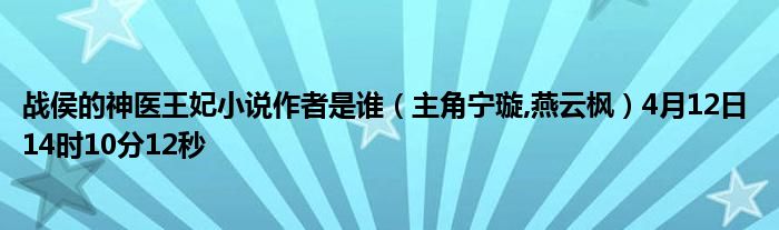 戰(zhàn)侯的神醫(yī)王妃小說作者是誰(主角寧璇,燕云楓)4月12日 14時10分12秒