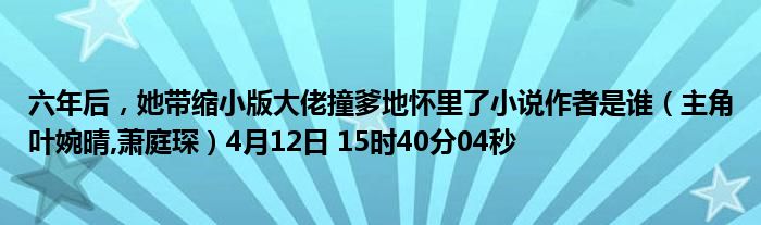 六年后,她帶縮小版大佬撞爹地懷里了小說作者是誰(主角葉婉晴,蕭庭?。?月12日 15時40分04秒
