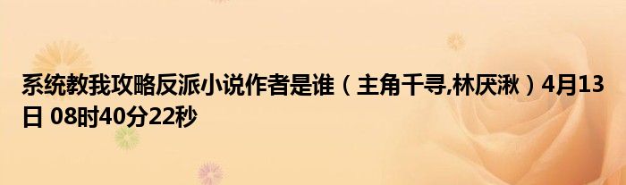系統(tǒng)教我攻略反派小說作者是誰(主角千尋,林厭湫)4月13日 08時40分22秒