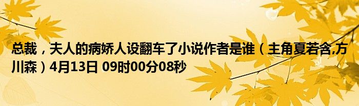 你們好,今天木子分享總裁,夫人的病嬌人設(shè)翻車了小說作者是誰,跟隨我一起瞧瞧吧!